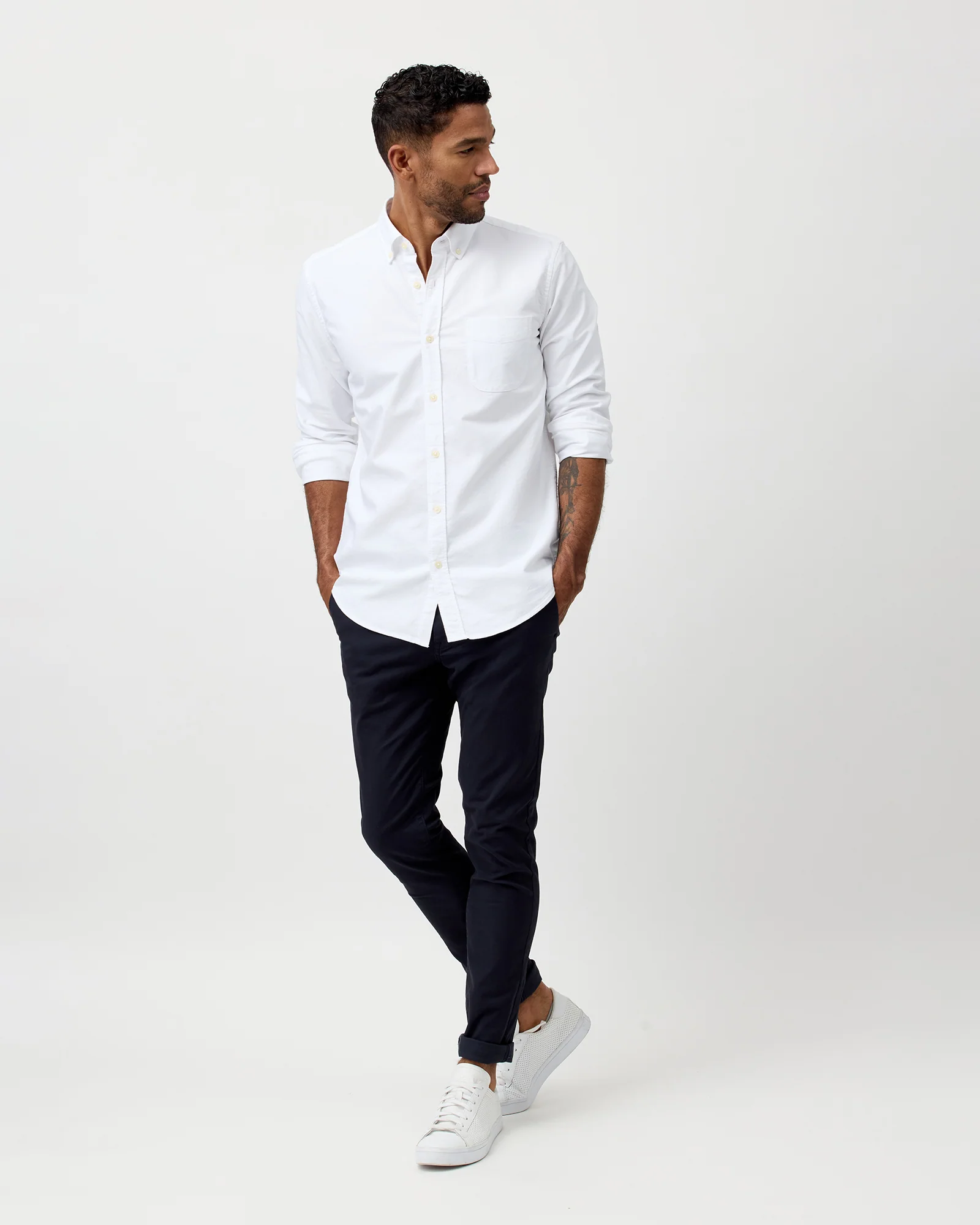 Our Button-Down Oxford Shirt is offered in an everyday regular fit, with a slim sleeve and our signature high standing button-down collar for a contemporary look. The White colourway is made from a mid-weight (120gsm) premium cotton, and given a soft wash to ensure all day comfort.
